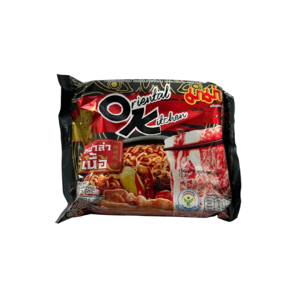 Les nouilles instantanées Oriental Kitchen de Mama proposent une expérience culinaire inspirée des saveurs asiatiques. La recette Bœuf Mala associe la richesse du bœuf à l’intensité du fameux mélange d’épices mala, originaire de la cuisine sichuanaise, réputée pour son piquant et ses notes légèrement anesthésiantes.